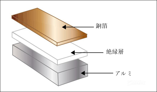 アルミ基板は最も広く使われている金属ベース基板( 又は金属コア基板)の1つです。さらに、メタルコア基板、アルミ積層基板または絶縁金属基板、等とも呼ばれています。アルミ基板の構造は通常の基板と大きく変わりません。通常アルミ基板は、①アルミ層、②誘電層(絶縁層)、③回路層(銅箔層)と④アルミ薄膜(保護層)の4つの層に分けられます。