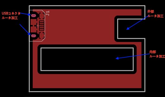 ●ルータ加工の結果は、メカニカル層の情報の正確さに依存します。このデータには、正確な基板の外形寸法、正確な位置、すべての外形とスロット(長穴)の寸法が含まれています。