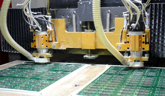 基板のルータ加工は、基板の外周と基板内のスロットや内窓を切り取るための製造工程の一つです。スロットや内窓は、ルータ加工によって加工されます。