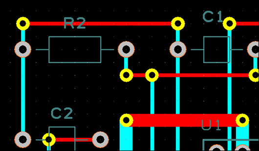 配線は、整然としてスムーズでなければなりません。プロの基板設計では、基板上の銅配線のほとんどは、45°の角度で曲がっています。理由は、45°の角度は、90°の角度と比較すると、部品間の電気的な経路が短縮できることです。また高速回路では、90°の角度は使ってはいけません。