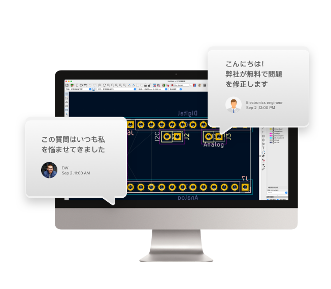WEEQOOは、他のメーカーが有料で提供している追加のサービスも、無料でご提供しております。プリント基板のファイルを受け取ったら、弊社のエンジニアがファイルをレビューして潜在的なエラーをチェックし、必要に応じて提案を行い製品設計の改善に役立てます。また、1対1のプロフェッショナルな営業チームが、お客様の注文に関する問題に迅速に対応いたします。ささらに弊社は、お客様にお届けする最終的なプリント基板が信頼できて、欠陥がないことを保証するため、弊社の工場で製造されたすべての基板に追加料金なしでEテストを実施します。