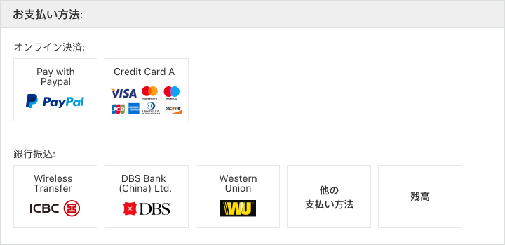 データチェックを通過後、配送方法を選択し、お支払いに進みます。 お支払いは以下のオンライン決済に対応しています: PayPal/クレジットカード(VISA、Mastercard、American Express、JCB、Diners) その他の決済方法(銀行振込、AliExpress Pay、Western Union など)をご希望の場合は、service@weeqoo.jp までご連絡ください。 なお、お支払いの前に、お届け先の情報が正確であること(都市名と郵便番号の一致含む) を必ずご確認ください。